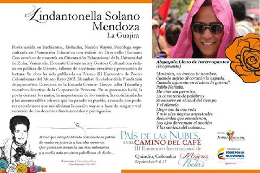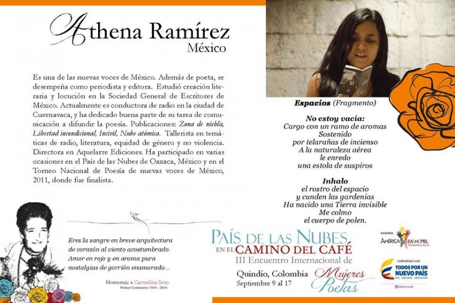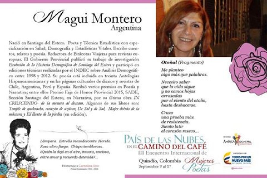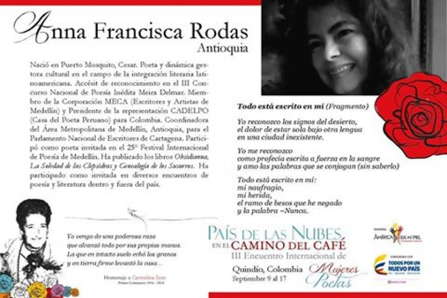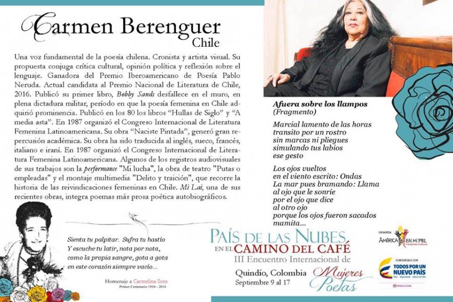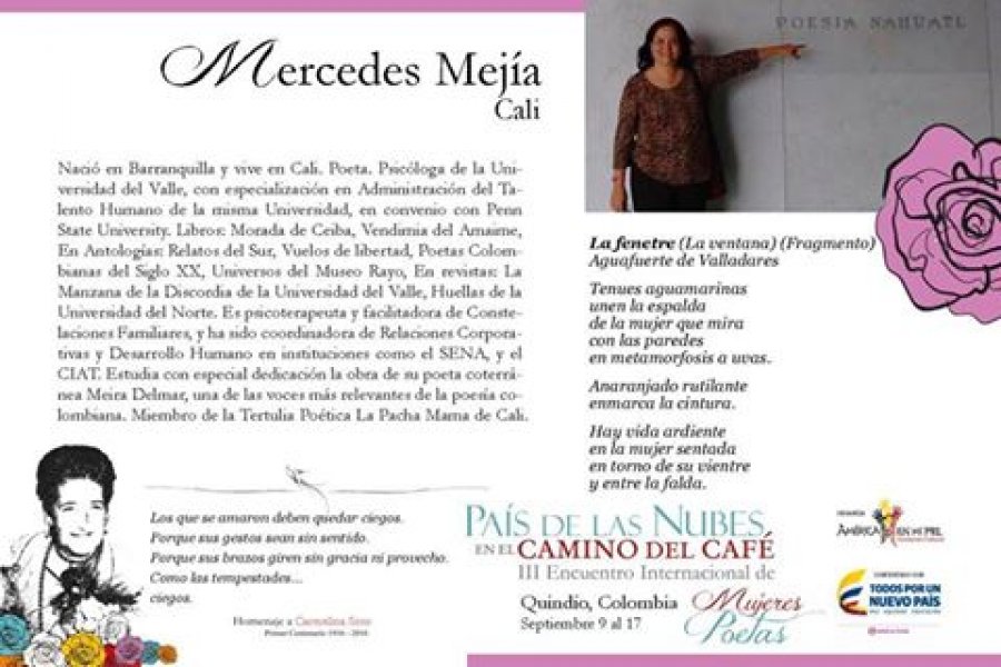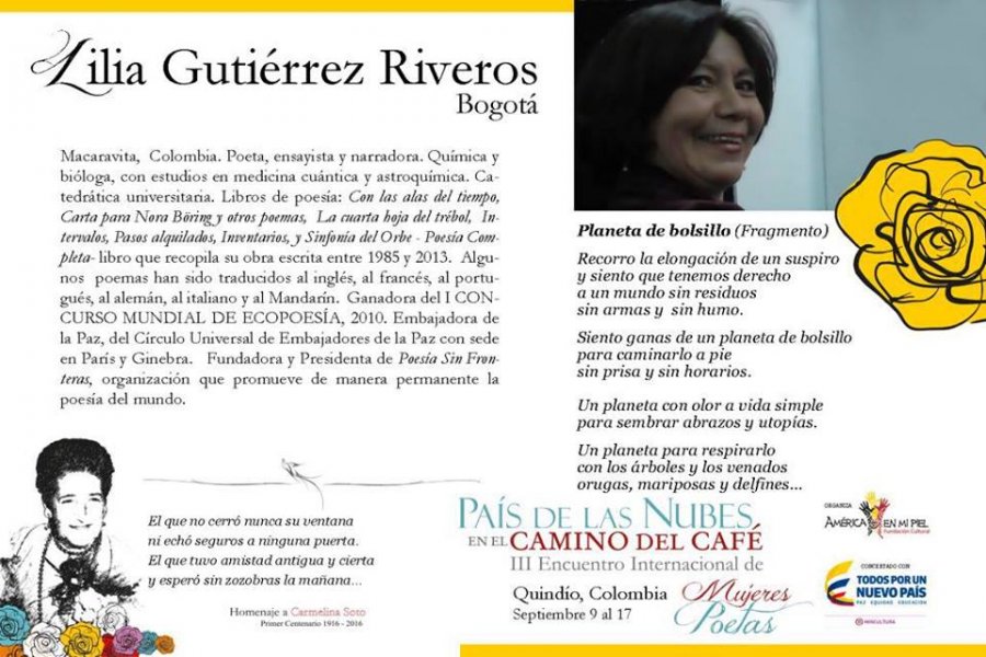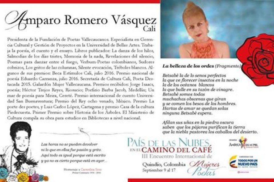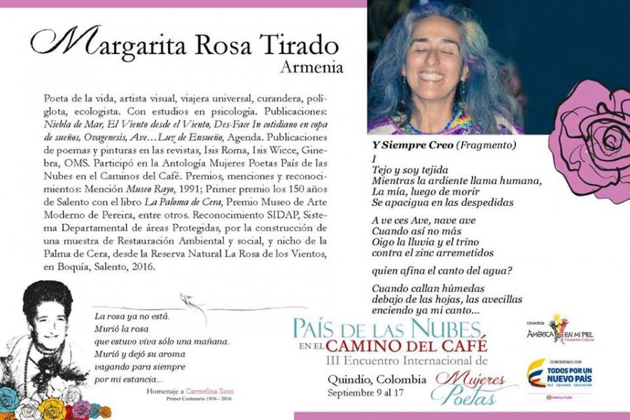 COMPARTIMOS LA NÓMINA DE POETAS INVITADAS AL III Encuentro Interanacional "País de las Nubes en el Camino del Café" - Homenaje a Carmelina Soto. Del 9 al 17 de septiembre. SÍGUE A LAS POETAS POR LOS PUEBLOS DEL QUINDÍO!!!