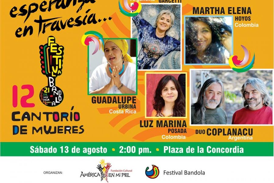 12 Festival Bandola 2016 - CantorÃo de Mujeres Del 12 al 15 de Agosto, Festival Bandola 2016 y en el marco del mismo, el Cantorío, que será el día sábado 13 de agosto en Sevilla, Valle y que se realizará a las 2:00 pm en la Plaza de la Concordia. Compartir con: